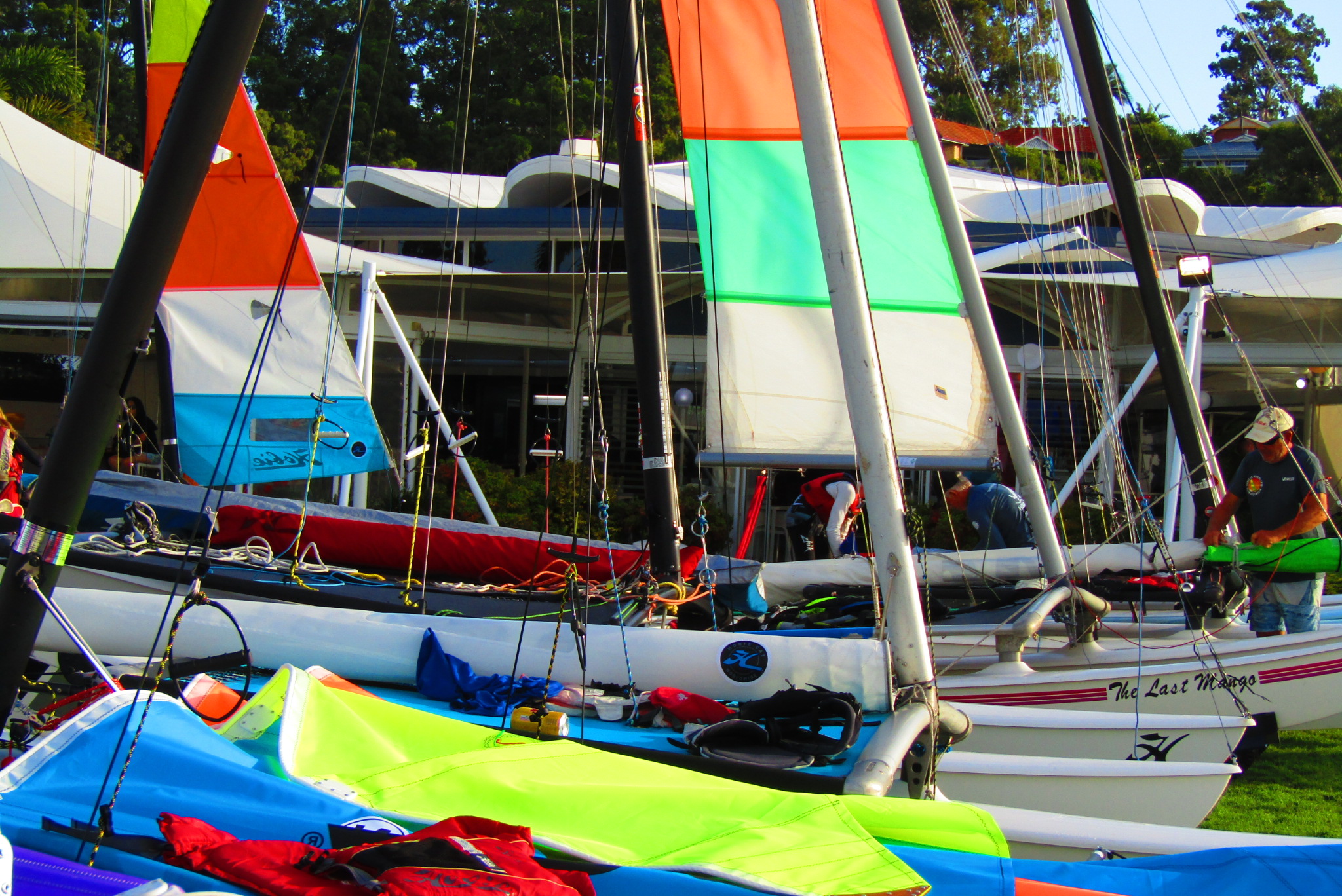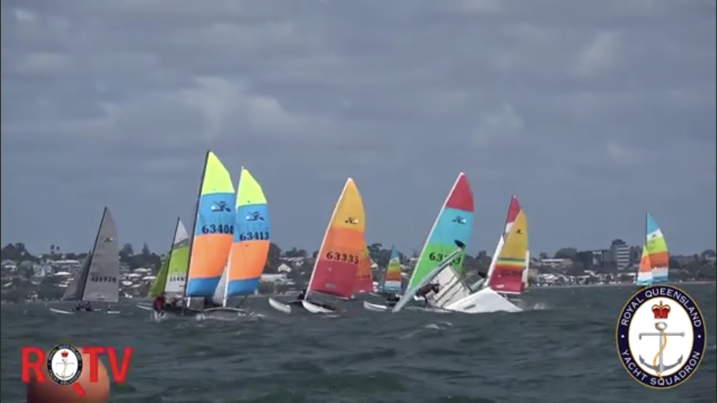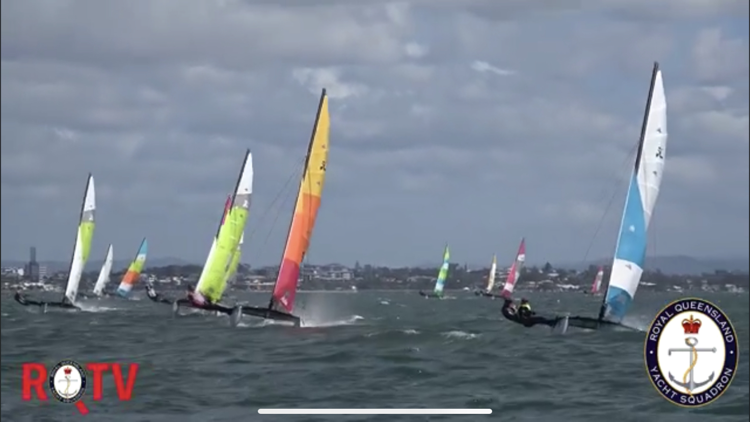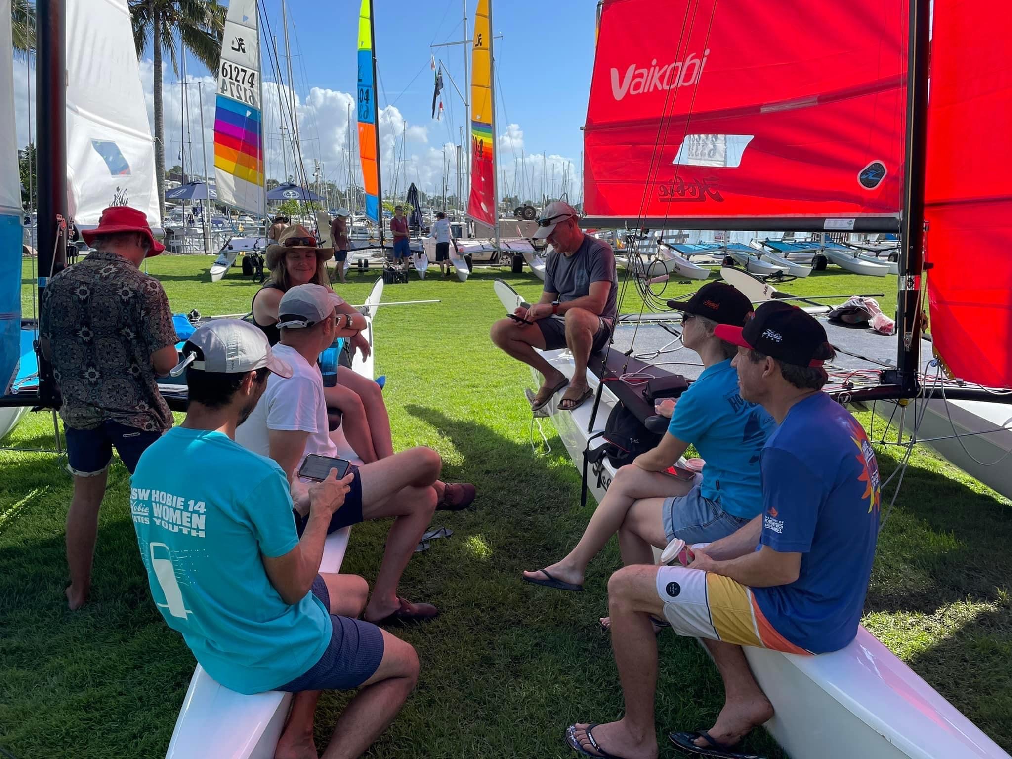 As our sailors woke to another blissfully muggy morning on the edges of Bris-Vegas, the bell was rung for the first day of quality Hobie Cat racing.