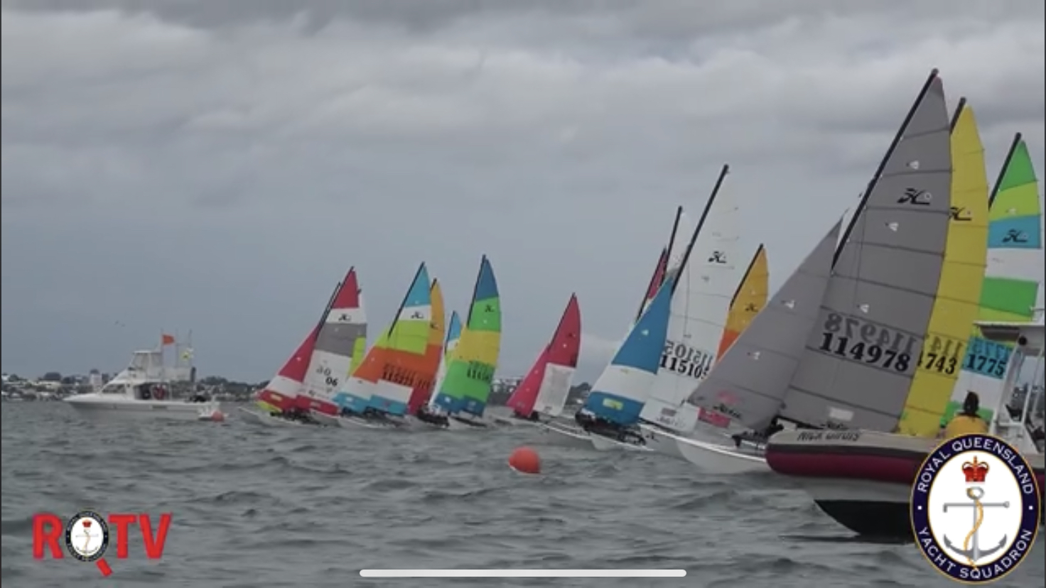 The highly respected RQYS race committee attempted the first start for the Hobie 14s, although soon it was hastily postponed as it was evident there near to bugger all breeze up at the top mark.