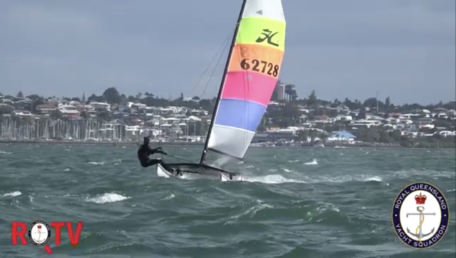 “And a final thank you to everyone else who helped to make this mini-Nationals such a great regatta – the Queensland Hobie Class Association (capably led by Rob Branch), the Royal Queensland Yacht Squadron team members for their excellent race management, facilities and coverage of the event, and Sunstate Watersports (Sunstate Hobie) and also Cat Covers for generously donating so much wonderful merch for prizes.”