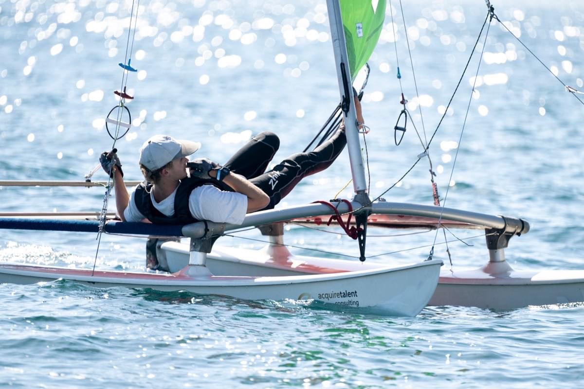 After what was very tight racing throughout the whole fleet, the Victorian powerhouse Zak Rowdon brought home the bronze on count-back, sneaking in just in front of the VSC local Will McKenzie with two bullets on Day 3 of racing. And closing out the top 5 was Masters Champion Gussy Fatches from the Royal Wangi ASC, competing in his very first on a Hobie 14 in over 20 years.