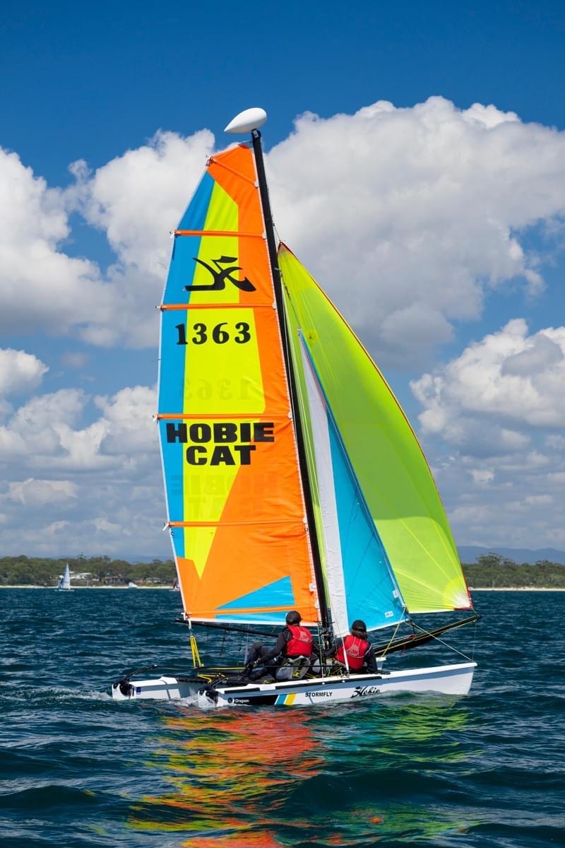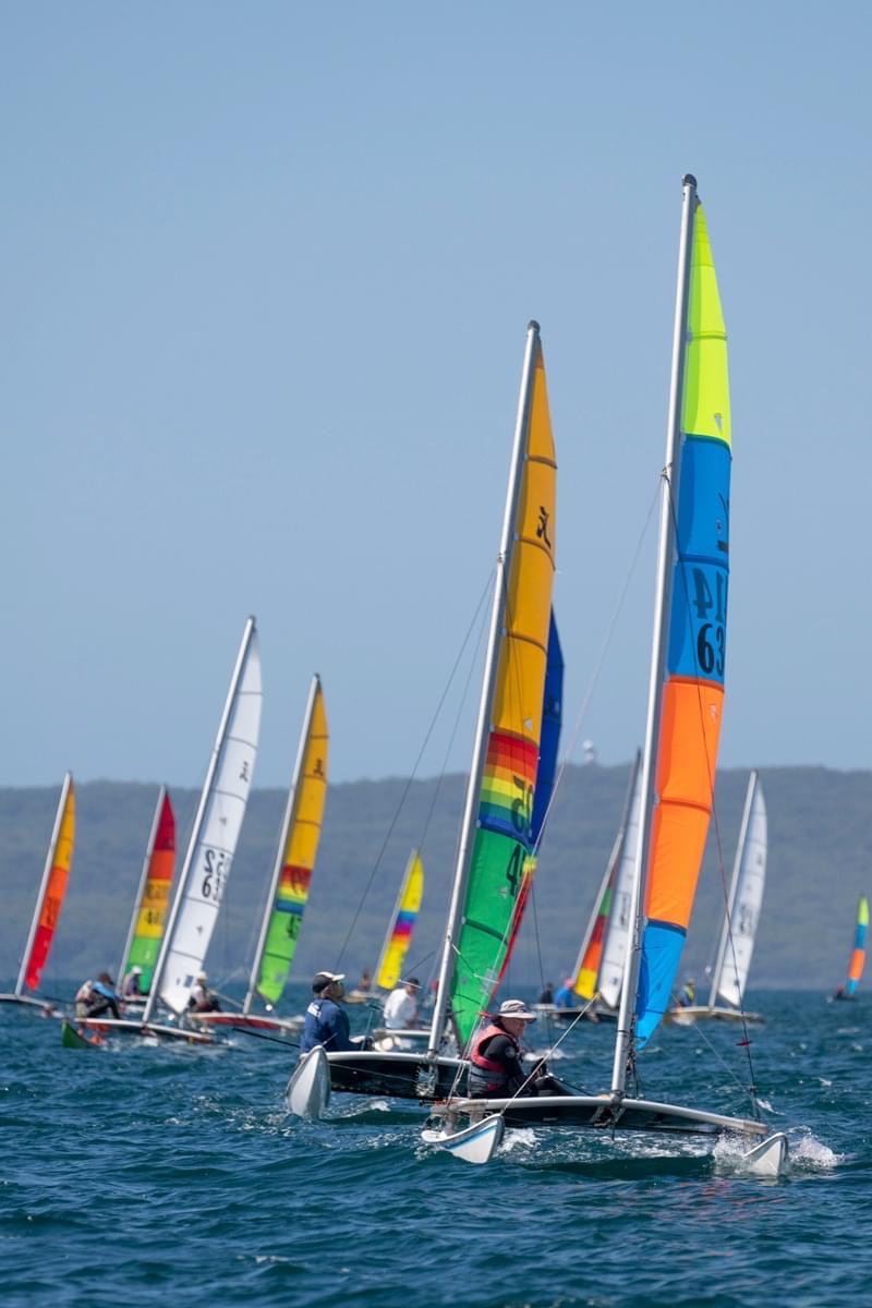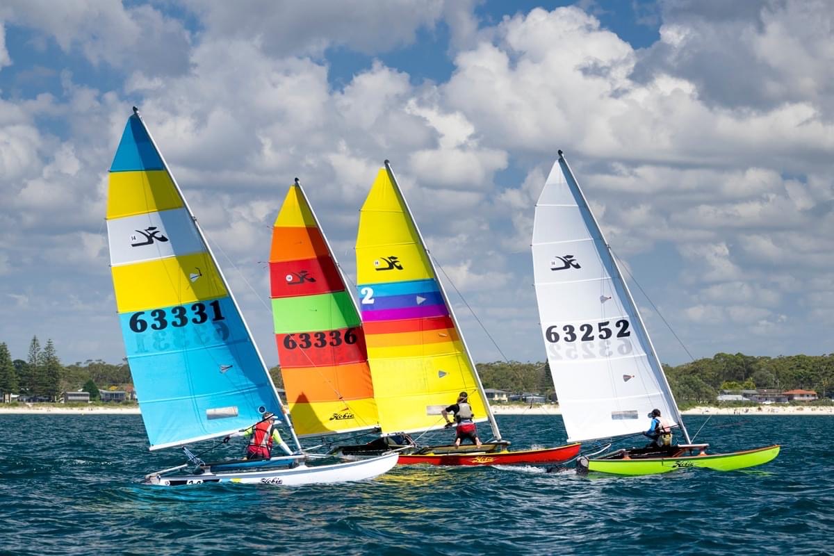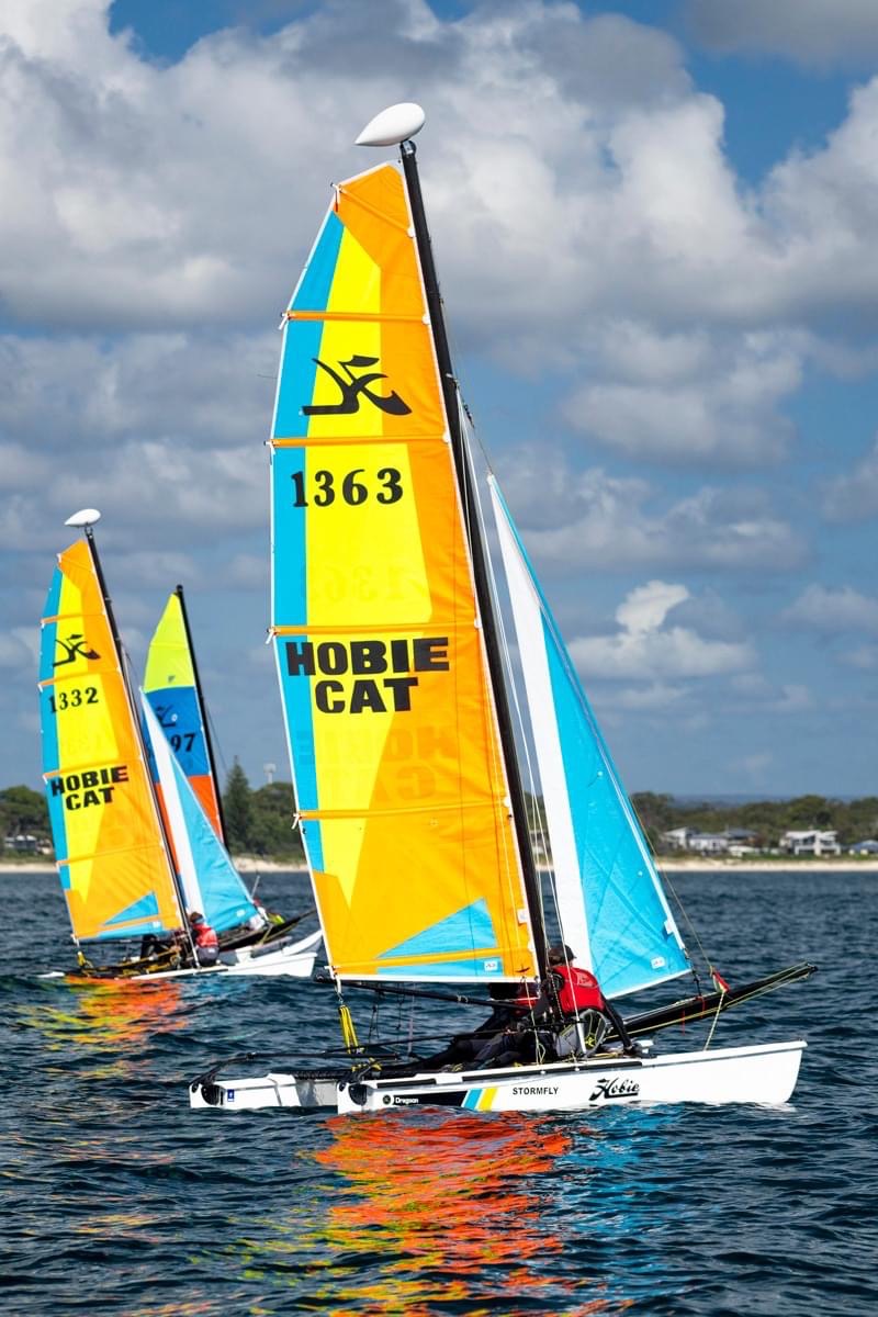 But before we go deep in the outcome of the regatta, we would like to acknowledge the exceptional growth that the Hobie 14 class has shown over the past few years, as expressed in our previous story The Australian Hobie 14 Class – Cowboy Racing. The absolutely glorious array of colour and competition that 35 Hobie 14s lining up on a start line is, both from when you are watching from the beach and when you are in the middle of it, is truely magical.