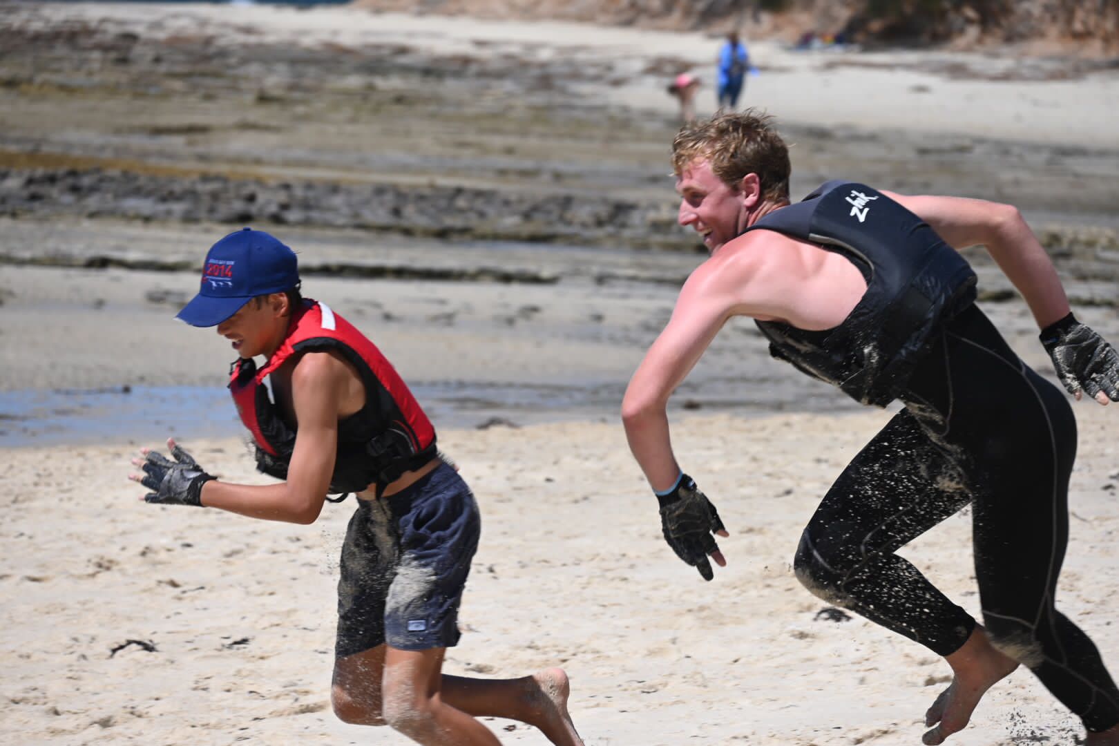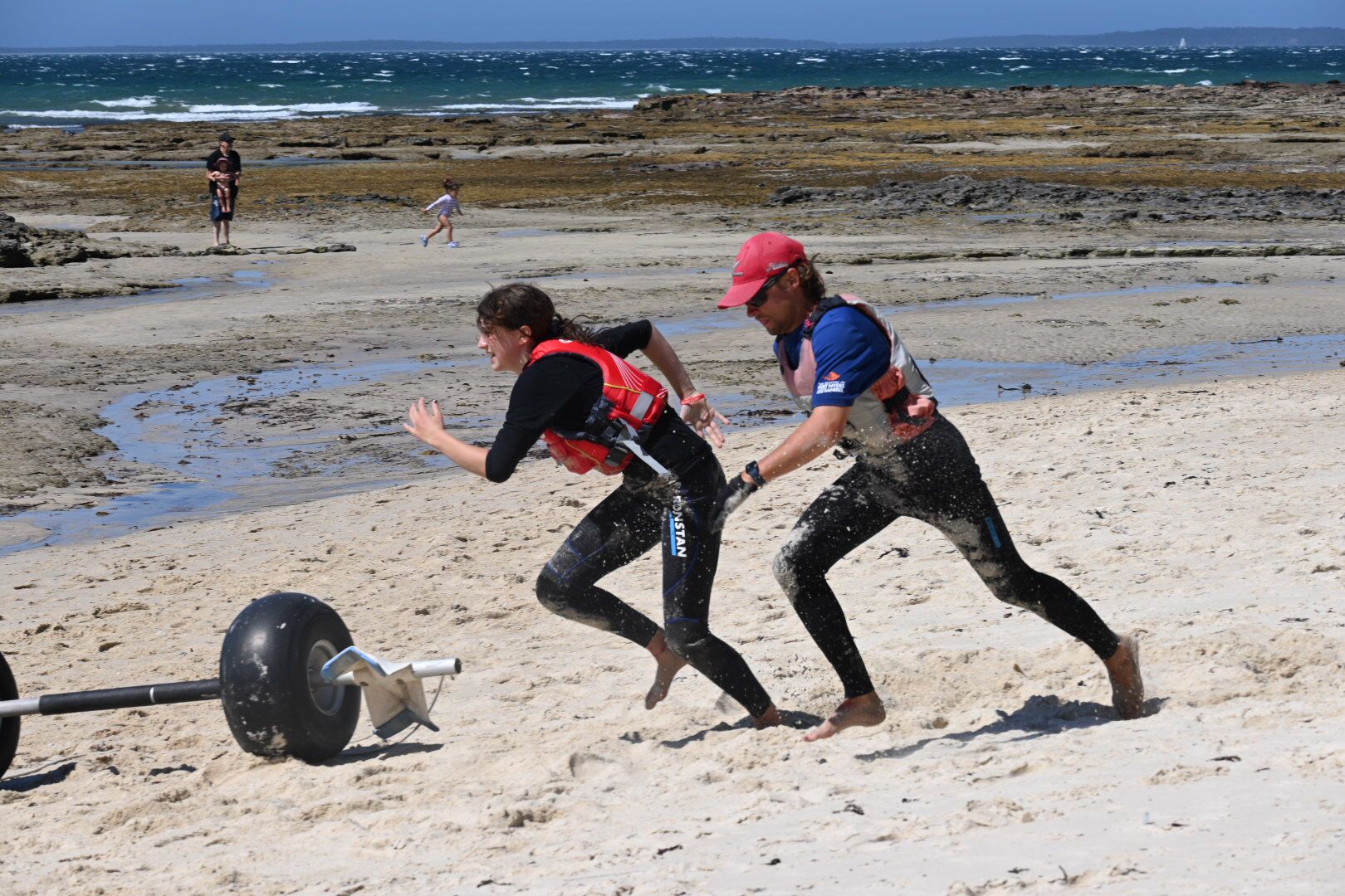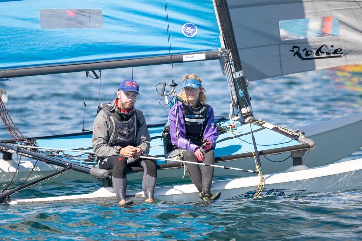 In addition to the spectacular fleet racing that took place in JB, on Day 1 of racing, our sailors were met with a 20+ Nor-easterly Seabreeze that after race 2, began causing absolute chaos on the race course. So in fashion, the VSC decided to put on the 10-year-event which is the ‘Hobie Wave Challenge’. As a 400-metre sprint race, teams of two would battle it out in time-trialed 1 v 1 races, where after all competitors have had competed one timed lap, the top eight teams went into a finals series. Eventually leading to a grand final which saw a VSC showdown of Will & Tait versing Pat and Nic.